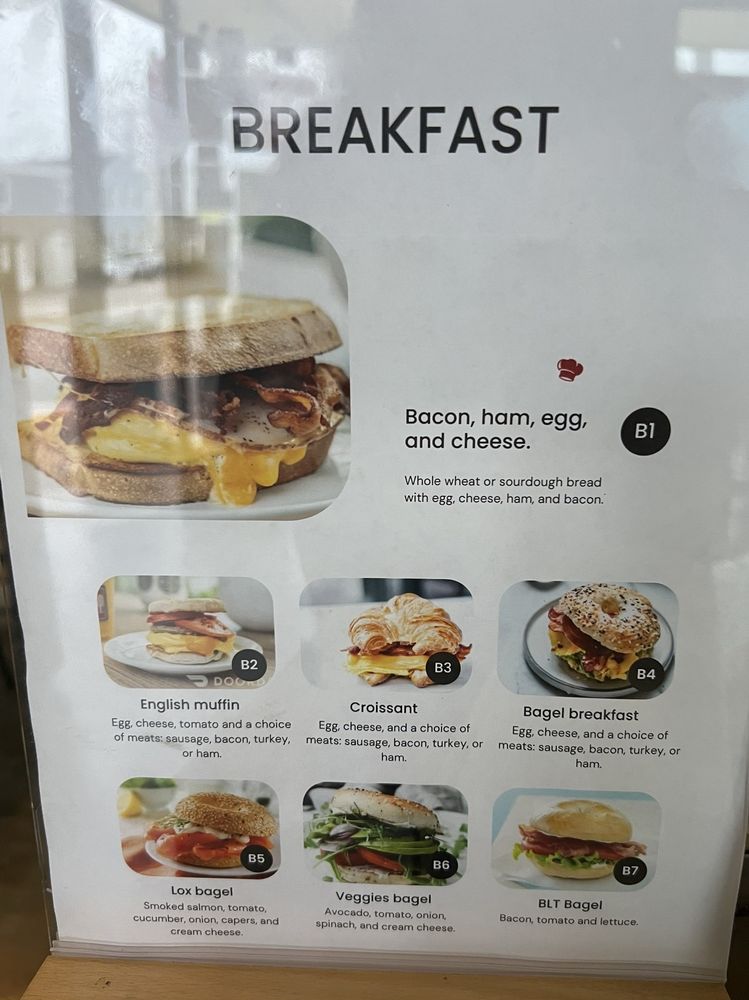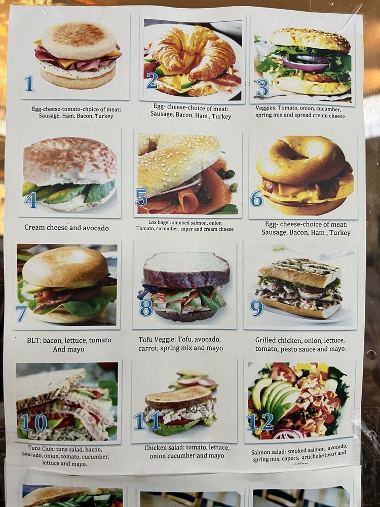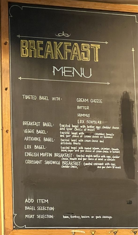 toasted bagel with butter, eggs, cheddar cheese and your choice of meats or avocado ( Meat Selection : Bacon, Ham, Turkey or Pork Sausage )
