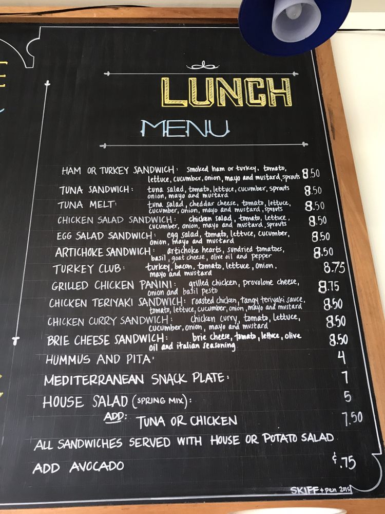 Tuna salad, bacon, avocado, tomato, onion, cucumber, lettuce, mayo and mustard.